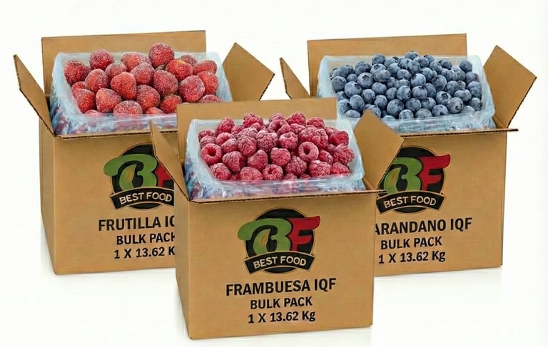 En Best Food abastecemos a clientes industriales con fruta congelada IQF, asegurando continuidad de suministro durante todo el año. Nuestra operación logística está diseñada para manejar altos volúmenes, manteniendo el control de frío y la calidad del producto en cada etapa de la cadena.